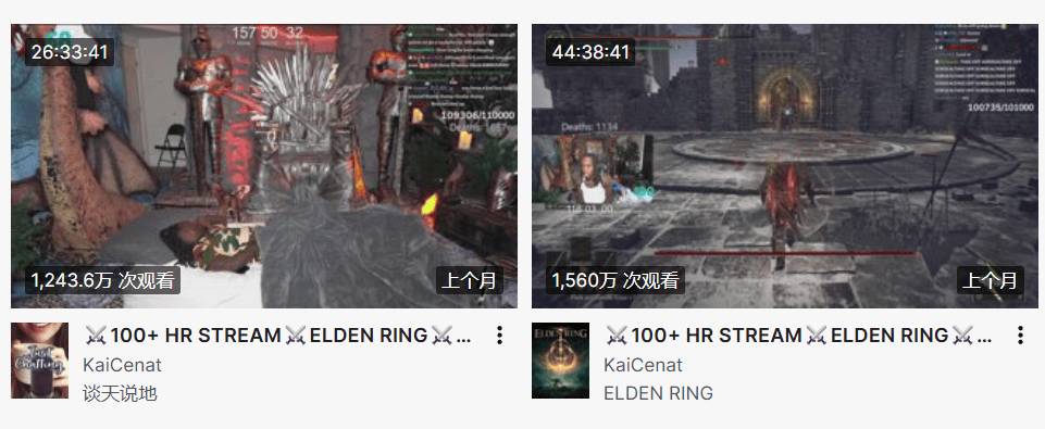 Kai在Twitch平台有着1165萬名粉絲,是名副其實的頂流主播,他不太需要這場作秀來為自己本就很成功的直播事業博取關注度,Kai堅持跑完全程的理由很簡單——他真的很喜歡《艾爾登法環》這款遊戲,他的直播流量也多少在DLC發售之前,為遊戲又做了一輪預熱。
