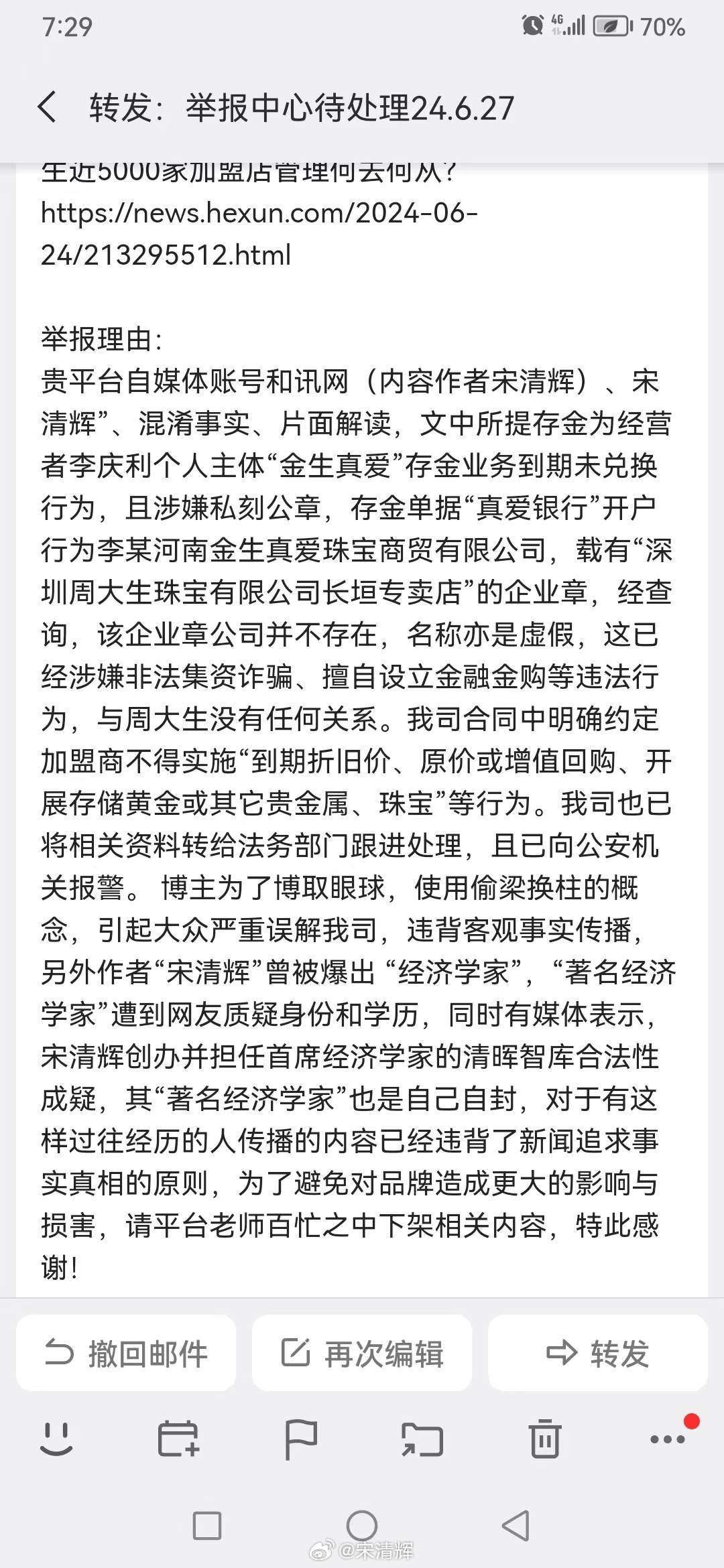 對於該信息,筆者今日上午已通過郵箱向周大生珠寶股份有限公司求證相關信息,包括該報道中提及的周大生珠寶店的事件是否屬實?該周大生珠寶店與周大生的關係?對該店開展存金存錢業務是否知情?等等。不過,截至6月24日下午4點後發稿,筆者尚未收到來自周大生公開郵箱回覆的任何信息。