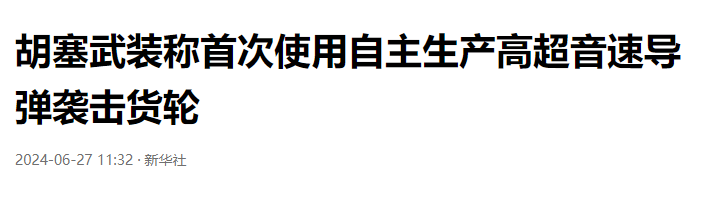 我原計劃要跟進到7月份,沒想到6月下旬胡塞武裝就已經實際應用高超音速導彈打擊美西方的目標了。