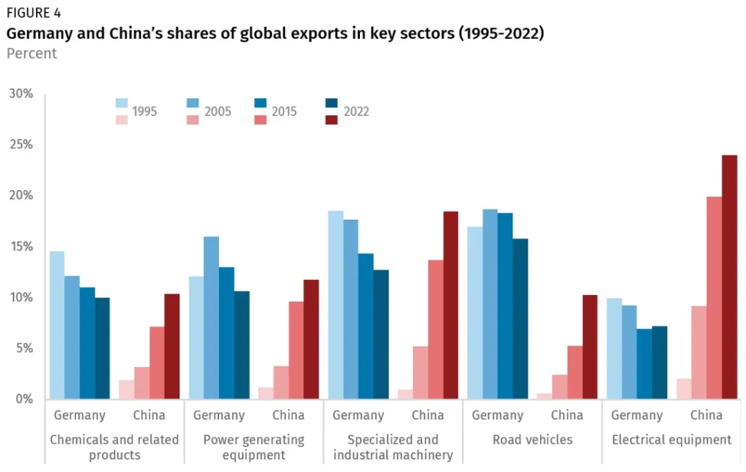 2016年至2023年,德國佔歐盟對華外國直接投資總額的比重平均為58%,顯著高於之前十年平均38%。
