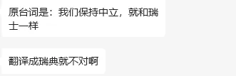 原本的台詞應該的“我們是中立的,就像瑞士一樣”。