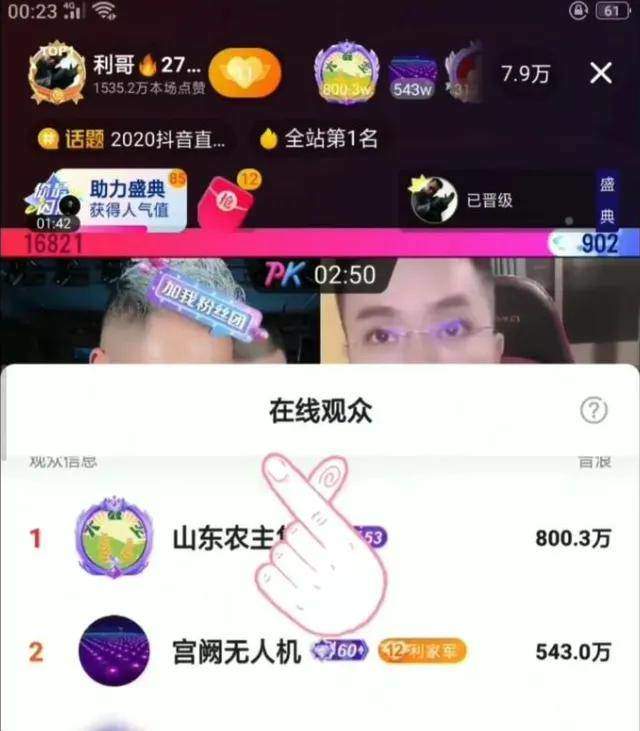 同時,據媒體報道**,2020年下半年,韓鴻濱通過山東農主集團、宮闕無人機賬號給一位名叫「利哥」的抖音主播打賞**,其中宮闕無人機賬號打賞等級60級、山東農主集團53級。