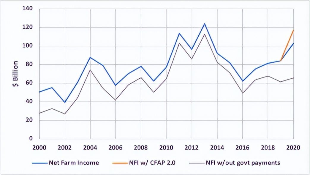 僅2020年,美國農業部提供的補貼就達到了465億美元。