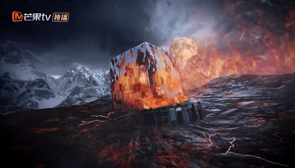 這正是《魔方新世界》不同於其他迷綜之處:**實境博弈與推理綜藝融合、線下搭建實境空間和線上AIGC技術融合,讓觀眾在追綜過程中感受電影級質感的視聽體驗。**六個主題空間也帶來了截然不同的視聽體驗:比如“禁閉逃殺”主打末世生存,場景打造極具賽博朋克氛圍;“妙手之爭”則是滿滿的東方宮廷質感。