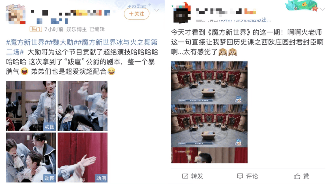 也有人是奔着“自家偶像”而來,畢竟涵蓋多領域的18位“精智”玩家陣容的確龐大。微博上有人享受“舔屏神顏”這種最單純的快樂,也有人被自家偶像一手跋扈牌的反轉性格驚喜到,而最終都成為“養成系”新用户。
