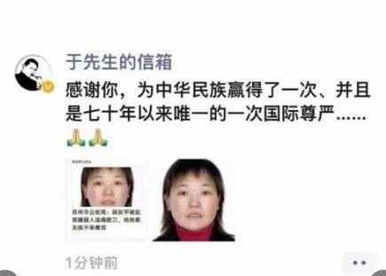 甚至有人説:“感謝你,為中華民族贏得了一次、並且是七十年來唯一的一次國際尊嚴……”