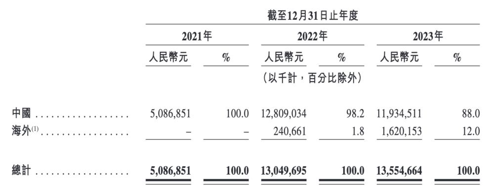 合眾汽車招股書顯示,其海外業務收入從2022年的2.41億元增長到了16.2億元,佔營收比重從1.8%增加到了12%。