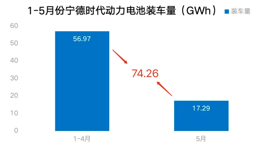 根據中國汽車動力電池產業創新聯盟數據,2024年1-5月,寧德時代動力電池裝車量為74.26GWh,市場份額達46.73%,同比增加3.8個百分點。