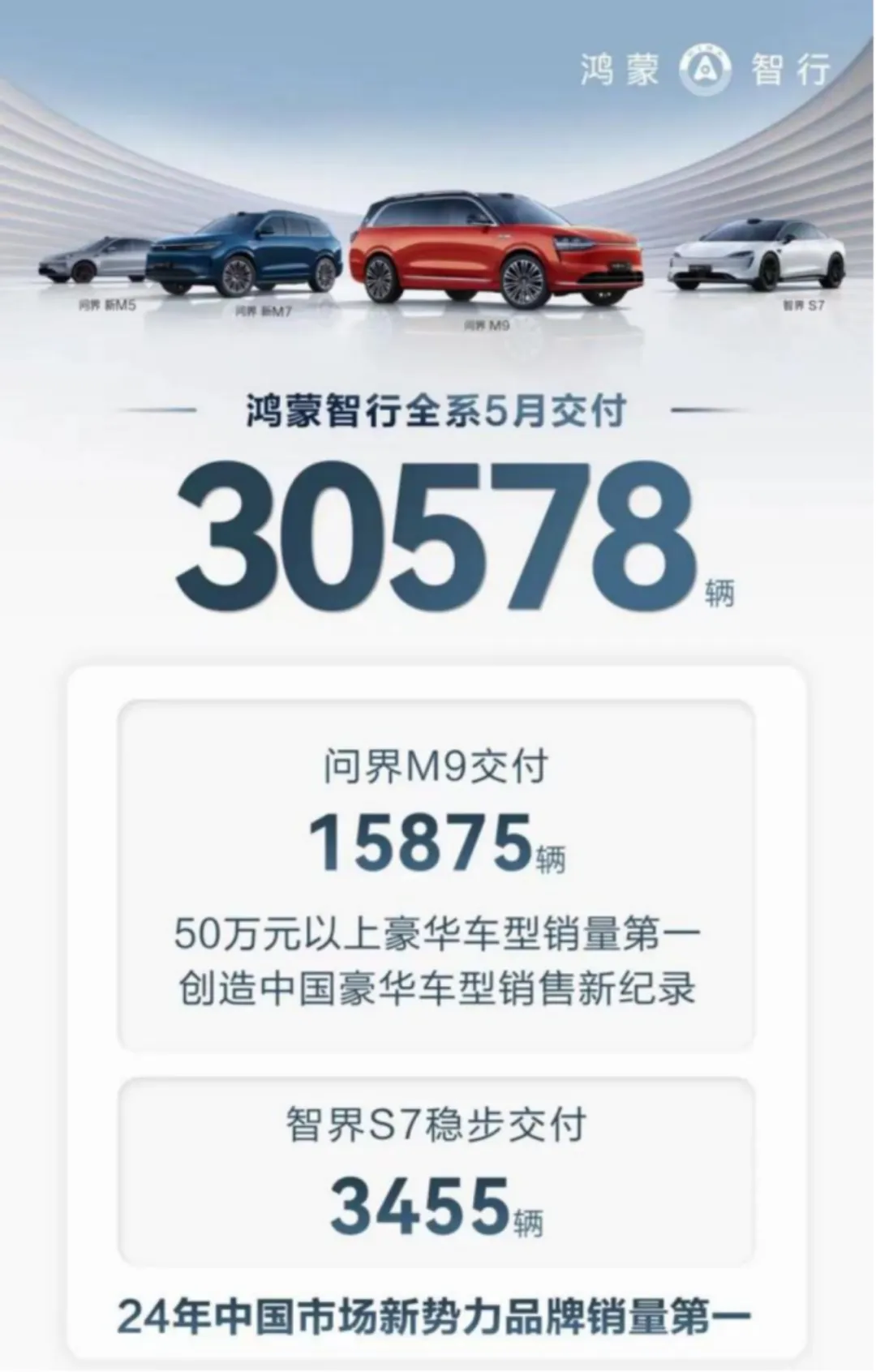 據瞭解,鴻蒙智行產品今年前5個月銷量達到15萬輛,屬於新勢力品牌的銷量第一。