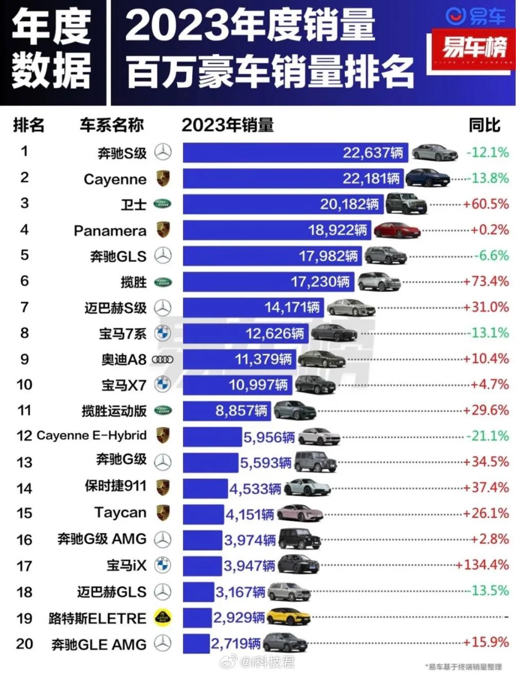 易車網統計數據顯示,2023年,奔馳S級在中國的全年總銷量22637輛;寶馬7系在中國的全年總銷量12626輛;奧迪A8在中國的全年總銷量11379輛。