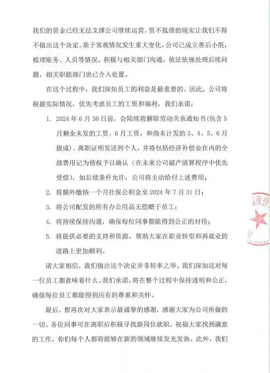 公告稱:「我們的資金已經無法支撐公司繼續運營,資不抵債的現實讓我們不得不做出這個決定。」