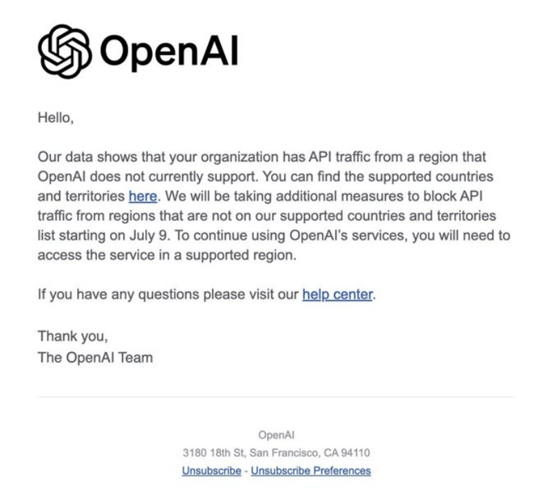 自7月9日起,包括中國大陸、中國香港、俄羅斯、朝鮮、伊朗等國家和地區都不能再接入他們的API。