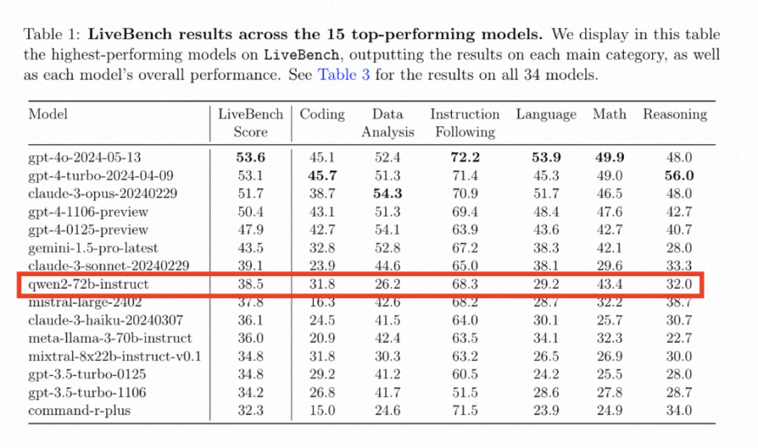 但這是包括了所有閉源模型的總榜單,Qwen2-72B是前十中唯一一個開源模型。