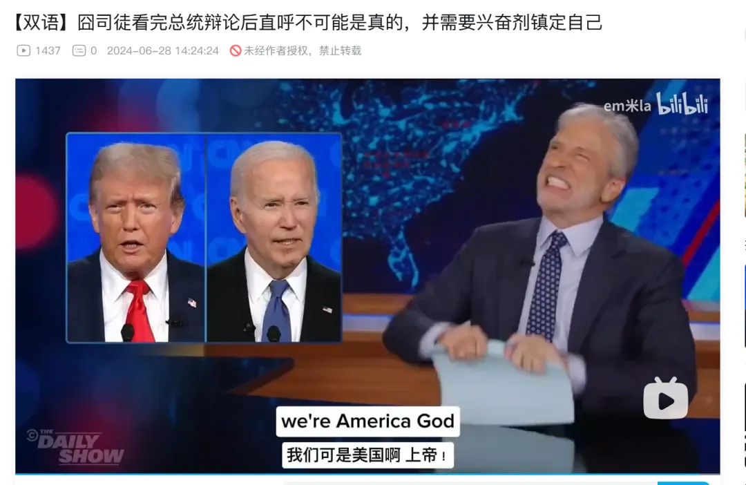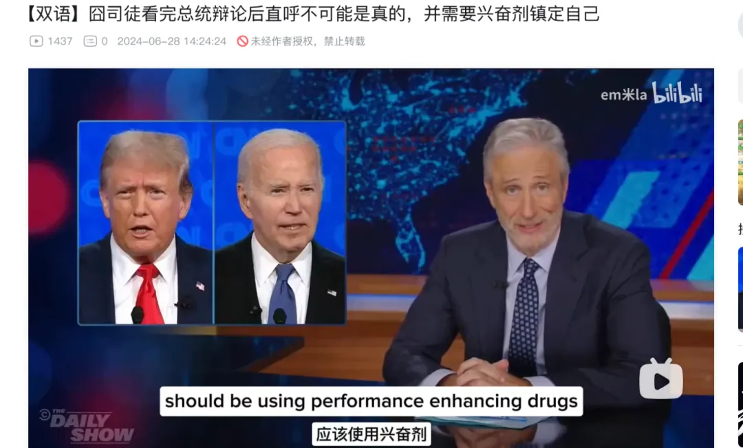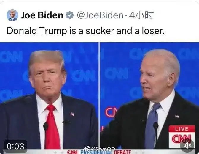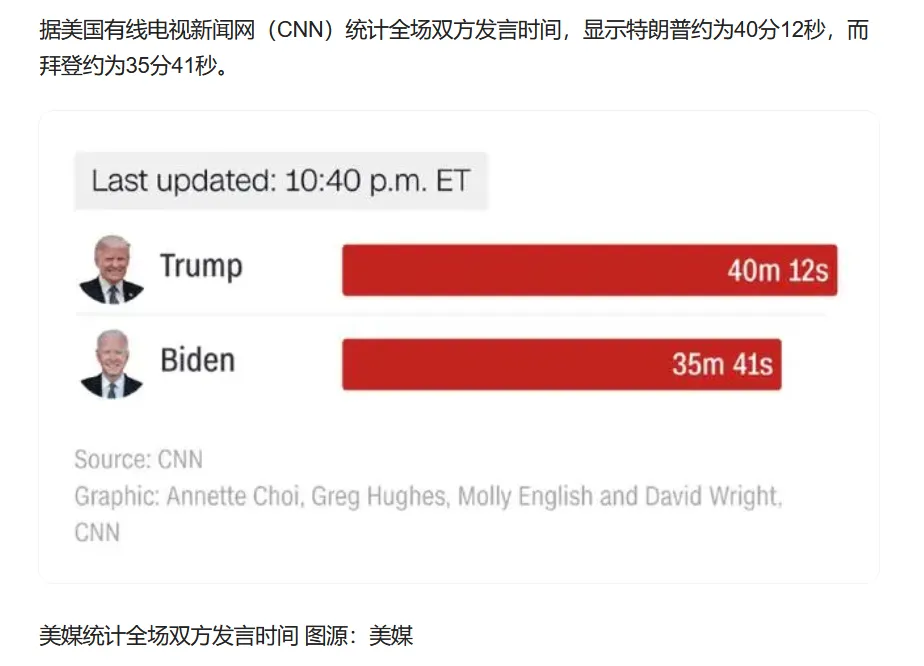 **但這場選舉最終和2020年一樣,淪落為對雙方的人身攻擊。**比如誰是最糟糕的美國總統,誰是罪犯;甚至誰高爾夫打得更好。拜登嚴重的口誤和表情管理失敗成為大多數觀眾判斷輸贏的重要依據。在開局十分鐘的時候拜登就因為卡詞曝出了beat Medicare這樣的重大口誤。**CNN殘酷的同時分屏展示模式,更是將兩位候選人的差別放大。**這也是為何在辯論開始半小時內親民主黨網絡內就陷入恐慌的原因。