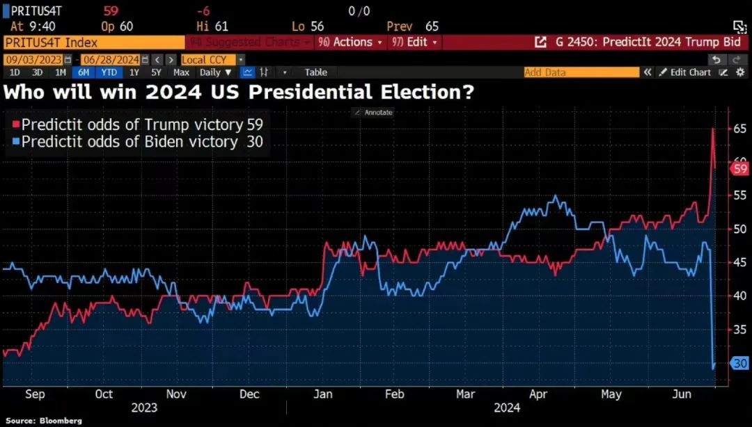 **第一,毋庸置疑的是,拜登是本次辯論明顯的失敗者。**雖然拜登在事後接受採訪時表示“我認為我們做得很好”,民主黨網絡裏充斥着更換拜登的聲音就是最好的註腳。對拜登團隊而言,舉辦總統辯論的最直接目的就在於消除民眾對其年齡問題的懷疑,平息對其認知能力的質疑。拜登糟糕得表現徹底摧毀了這一點。兩人之間高濃度的人身攻擊則嚴重損害拜登樹立的“成年人”認知。換言之,通過辯論提振民主黨支持者信心的計劃已經完全破產。