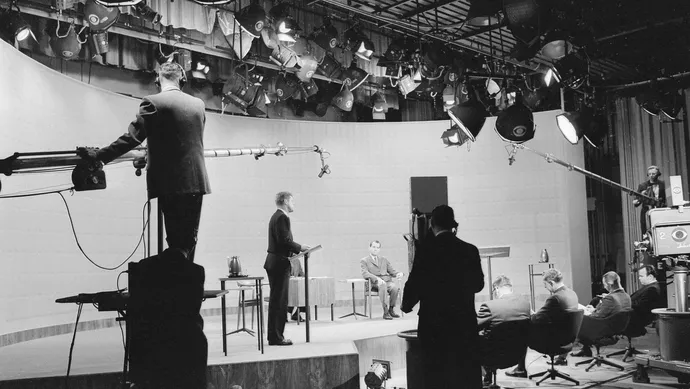 第一次重要的總統候選電視辯論就在尼克松和肯尼迪之間展開。按照傳統的劇本,尼克松擔任了整整8年的副總統;並且由於艾森豪威爾的信任在政府內部承擔了重要職能,絕不是作為花瓶的副總統。這也是為何尼克松在共和黨初選中沒有一合之敵的原因。他的對手,也日後著名的肯尼迪總統,僅僅才是第二任的參議員;在資歷和政治經驗上,處於壓倒性不利的地位。