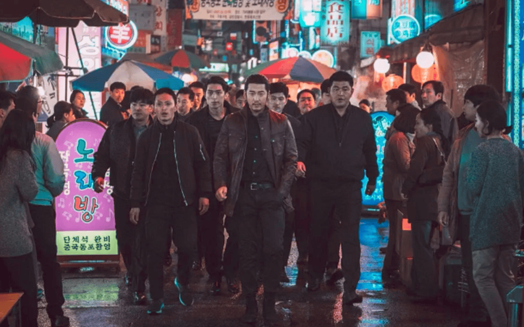 像2017年的電影《犯罪都市》中就有這種映射,來自哈爾濱的雙花紅棍張謙要賬跑到了韓國,讓欠錢的人把他老大叫來,幾句不合就把老大搞死了,並把毒蛇幫吞併了,接着一步步蠶食本地的幫派勢力,要不是馬東錫更加生猛,張謙帶頭的三人組簡直可以一統當地黑道。