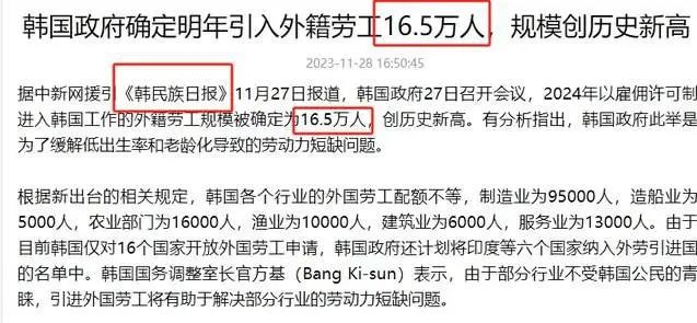 去年年底的時候,韓國宣佈了一項大規模引進外籍勞工的計劃,預計要在2024年從境外引入16.5萬名外籍工人,根據韓國官方的數據,在韓國就業的外籍勞動者人數,已經連續10年超過80萬人。