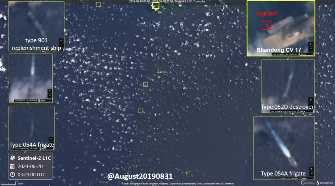 根據國內覓熵科技公司的衞星遙感照片顯示,南部戰區海軍的“鎮國神山”002型航空母艦“山東”艦,在於6月25日離開南部戰區海軍某軍港,約2天后,被發現出現在菲律賓呂宋島以西大約200海里的位置上,暫時沒有發現護航艦艇存在。但無論如何,這意味着中國海軍的“6萬噸底氣”航空母艦出動了。
