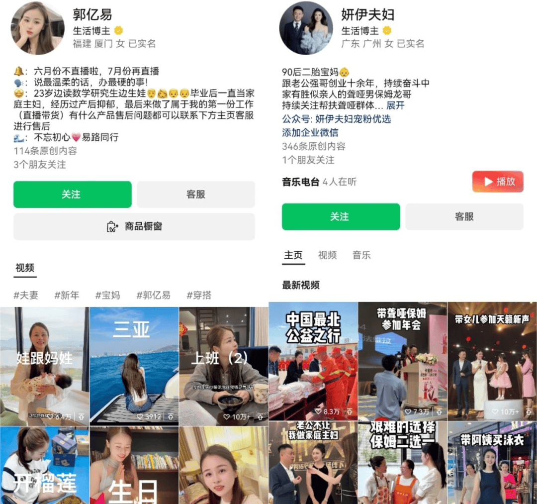 “郭億易”和“妍伊夫婦”視頻號主頁