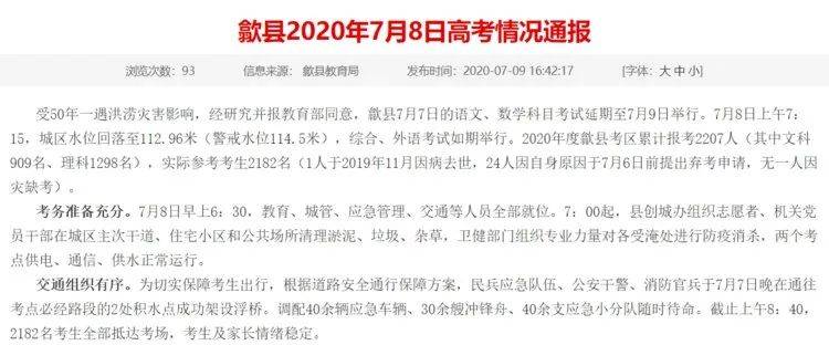 經歷過那一年高考的安徽歙縣考生,應該刻骨銘心,因為大部分考生居然因為暴雨而****未能進入考點,導致高考罕見延期。