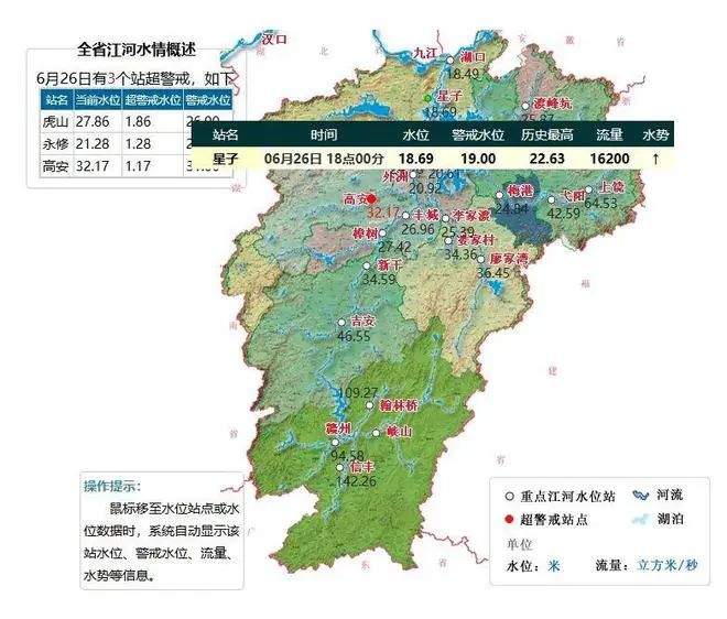 江西坐擁全國最大的淡水湖——鄱陽湖。據水文部門預測,6月27日前後鄱陽湖可能發生超警戒左右洪水;6月29日—7月1日鄱陽湖標誌性水文站星子站超警1米左右。