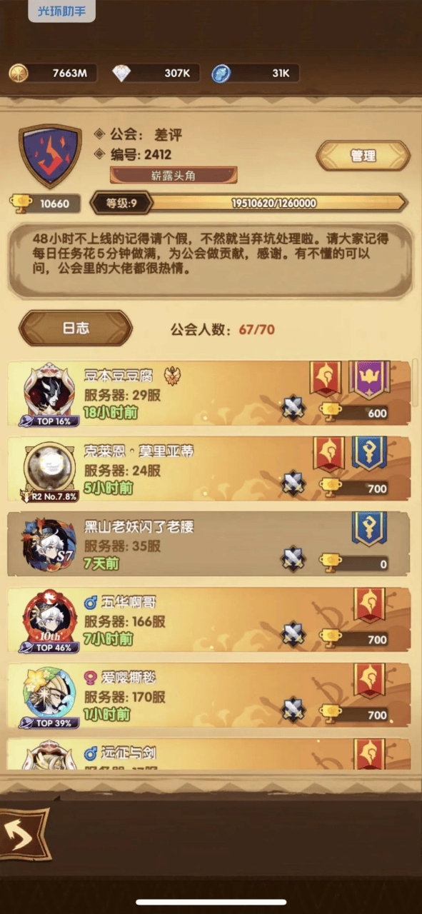 所以公會里的成員現在都知道怎麼玩,共同努力之下,我們公會在合區後還能排到第七。