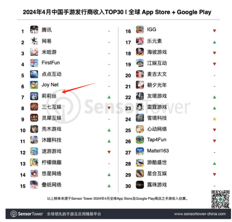 我觀察之後發現,在一些數據分析平台的出海廠商收入榜單上,莉莉絲的成績非常穩定,常年在前十,有陣子還經常進入前三。