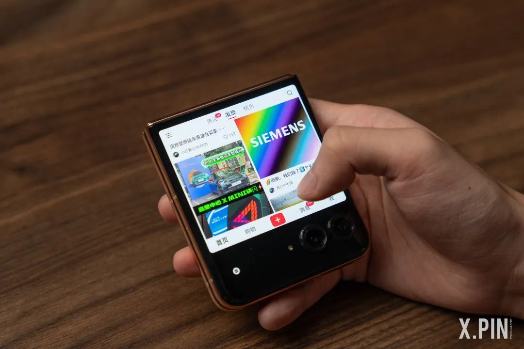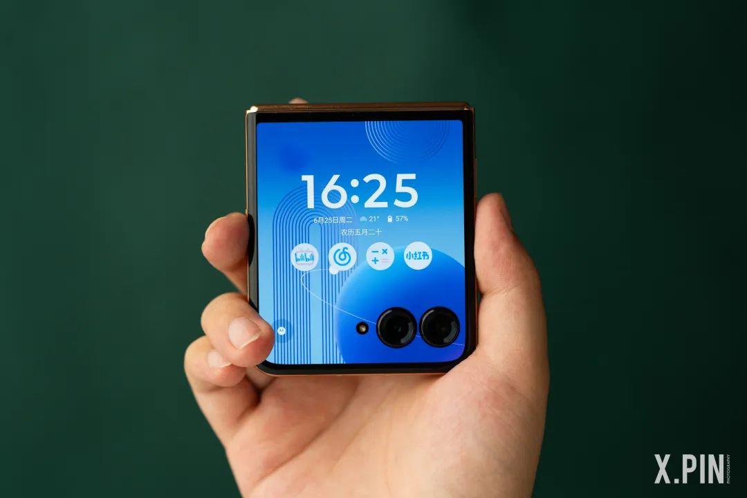 而隨着友商先後發佈了相對成熟的豎摺疊屏產品, moto 也跟隨大部隊思路做大外屏,但同時也加入了不少自己的想法。