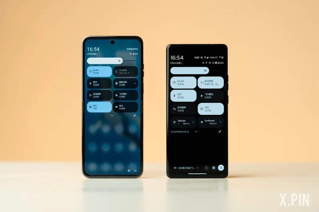 再比如下拉菜單,上一代直接照搬原生安卓,採用深色背景 + 大色塊設計,而 MYUI 7.0 則設置了一個選項,可以在原生安卓和現代風格之間切換。