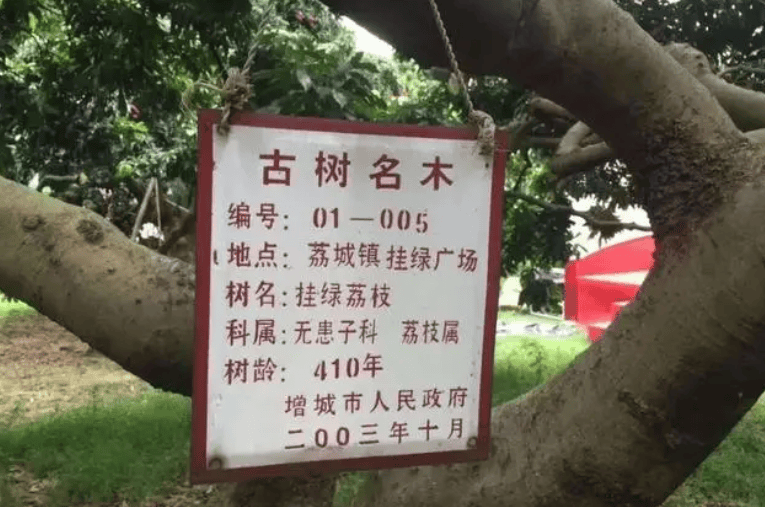 最早在嘉慶年間,百姓不堪官吏勒擾砍光掛綠荔枝。最終在增城西郊西園寺留下一棵掛綠荔枝,因為太過蒼老,在上世紀70年代末差點死掉,還是經農科專家奮力搶救後,終於復活。