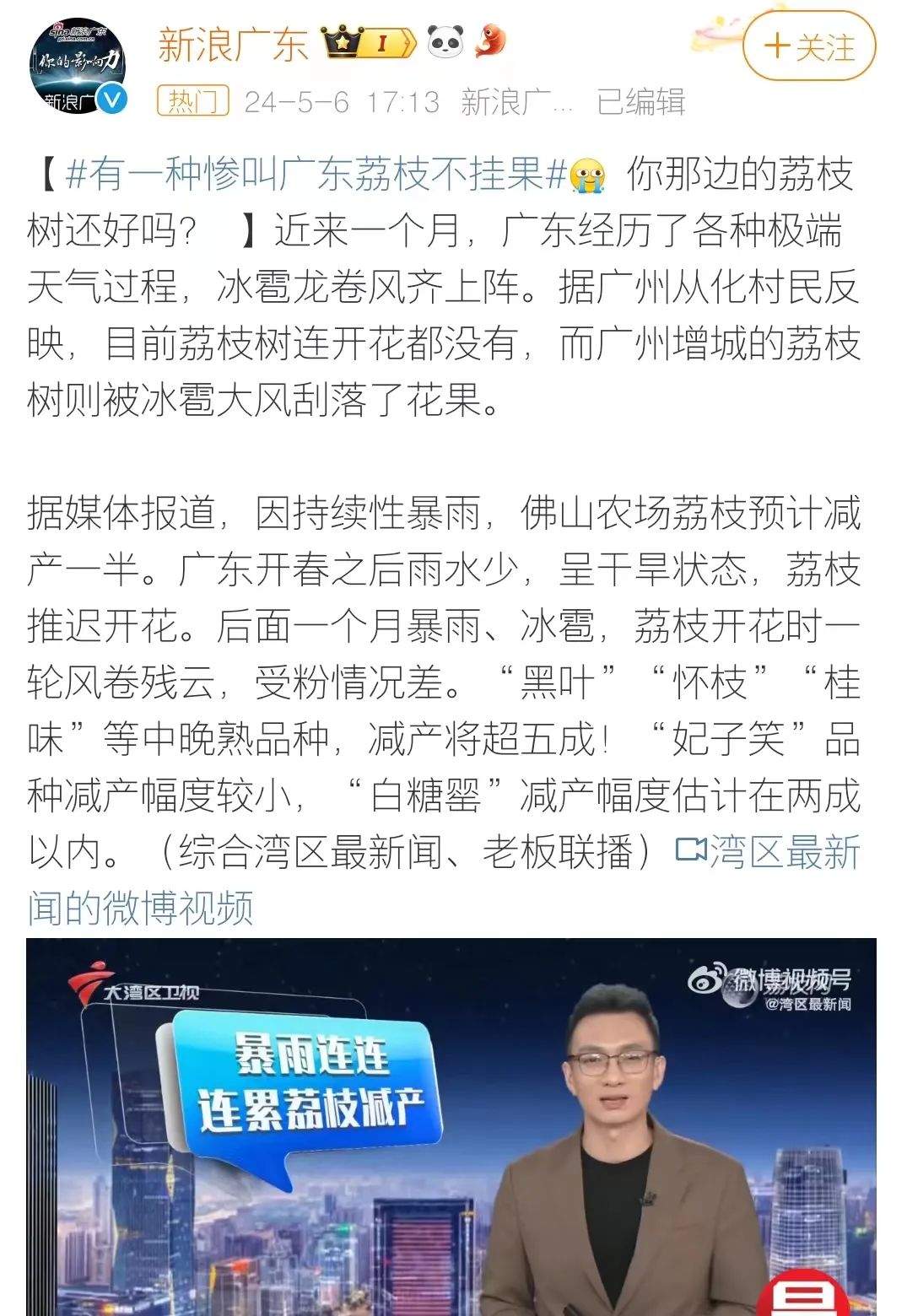目前桂味正處於膨大期,有數據顯示,今年全國荔枝總產量178萬噸,比去年減產45.94%。其中,廣東荔枝減產幅度較大,受天氣影響產量較低,價格自然就更貴了。