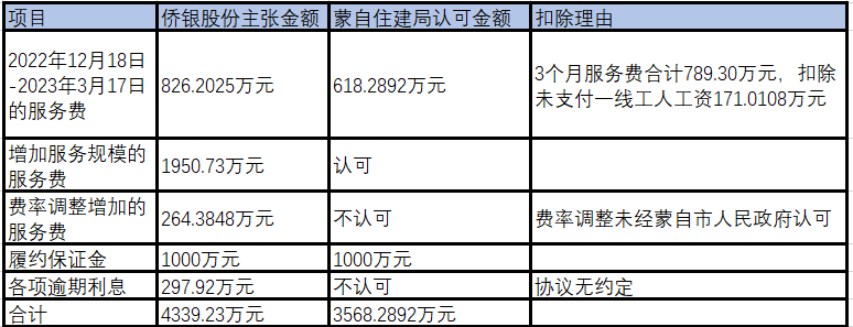 蒙自市住建局認為上述扣除費用的產生因僑銀股份服務不到位而產生。對於該結論,僑銀股份持不同意見,表示未拿出詳細的資料證明是因僑銀股份而產生的損失。