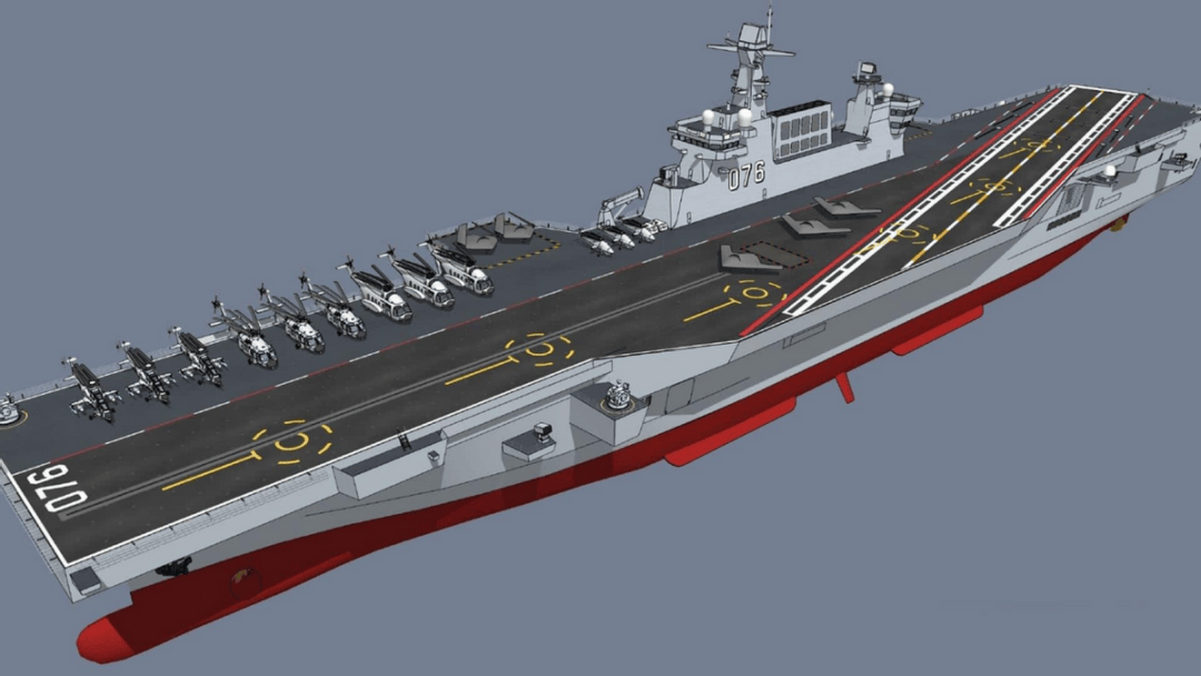 不同於單純搭載直升機的075型兩棲攻擊艦,正在上海建造中的076型大型兩棲攻擊艦,未來除了會搭載旋翼機以外,還將搭載固定翼的短距/垂直起降戰鬥機與先進隱身無人機。不過由於我國目前在短距/垂直起降戰鬥機研製方面存在較大短板,短期內難以滿足軍方需求。因此使得先進隱身無人機上艦被寄予厚望,而且可行性較高。