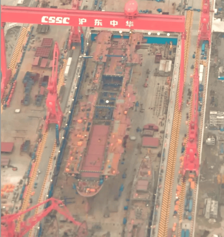 外界對正在建造中的076兩棲攻擊艦很感興趣,頻頻通過流傳在社交媒體上的相關照片對其進行分析。“動力”網站日前就刊文指出,根據目前公開資料來看,076兩棲攻擊艦的排水量大約有5.5萬噸,艦長約263米、寬約42.9米,同時期的075兩棲攻擊艦長約238.9米、寬約32米、兩相對比,076的艦長與舷寬都要比075大得多。