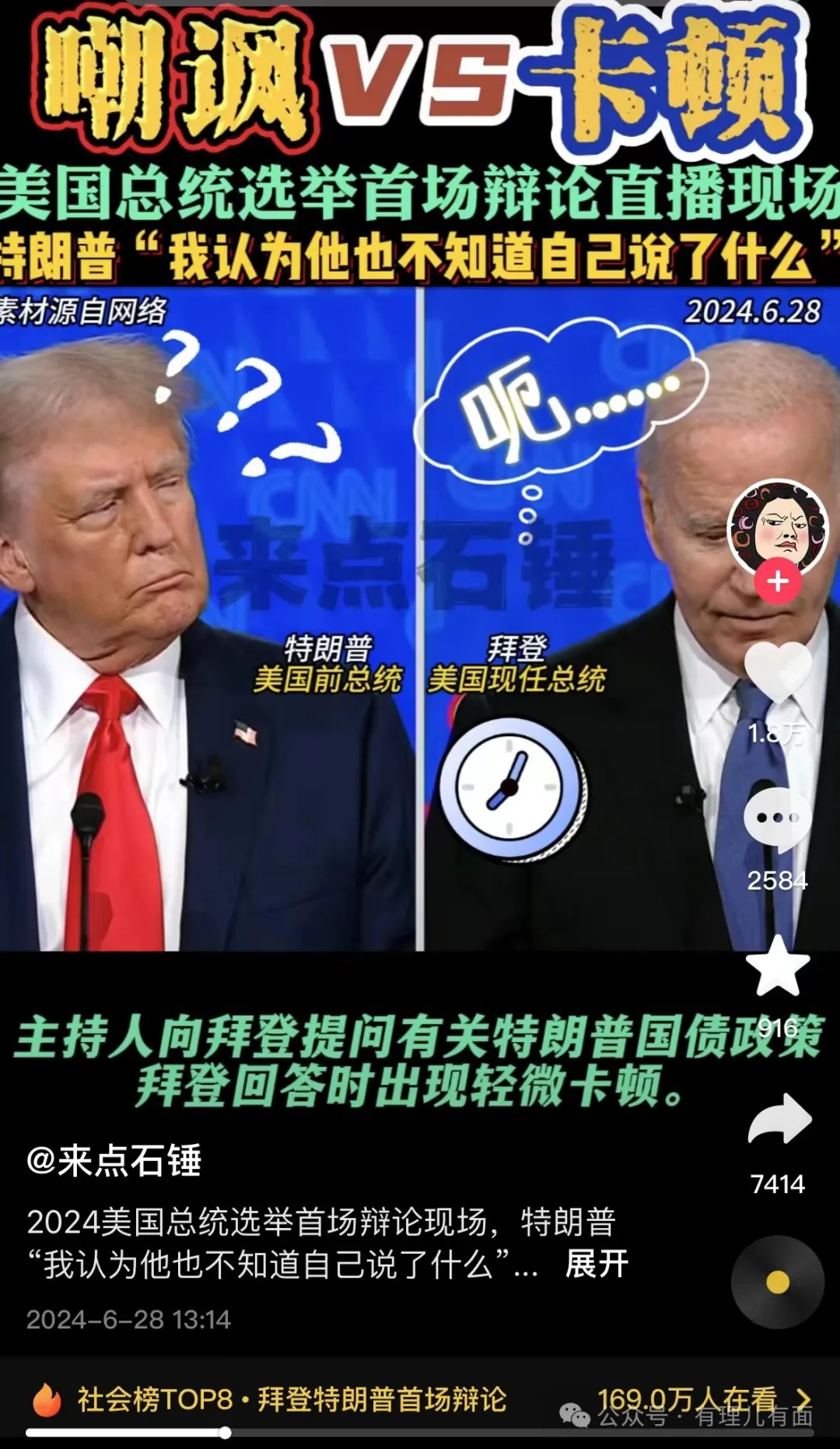 從精神狀態上來説,一個語無倫次的拜登和撒謊成性的特朗普,美國人在這兩者之間選誰也確實很難抉擇啊!