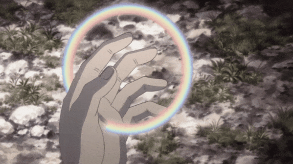 彩虹眨眼間消失不見,卻變成圓環寄生於人手之上。