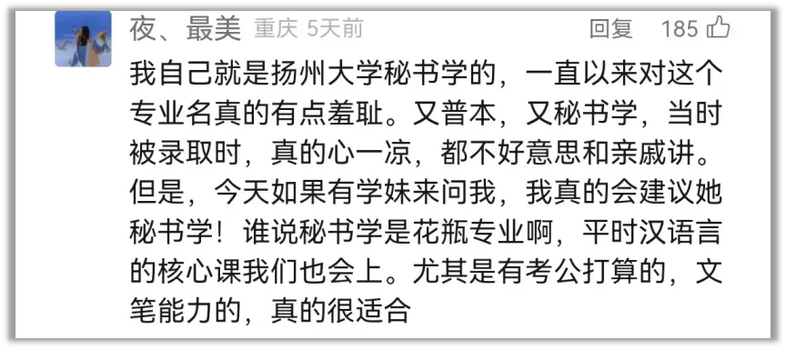 你想進入體制內,但分數夠不上工商管理、漢語言文學和法學這類“考公大户”,那麼你可以看看揚州大學的文秘學專業,它的分數線低於漢語言文學,但同樣可以考公。