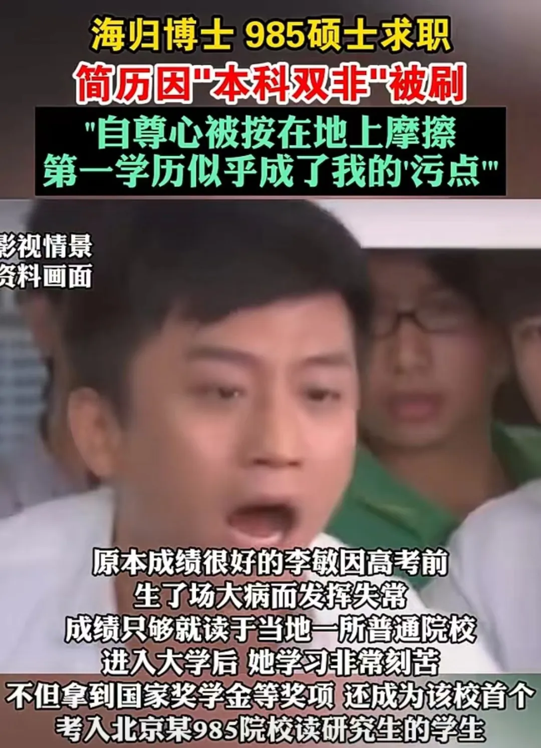 即便某些學霸在985讀了碩,還去國外讀了博,求職的時候仍然因為第一學歷“太普通”而受到歧視。