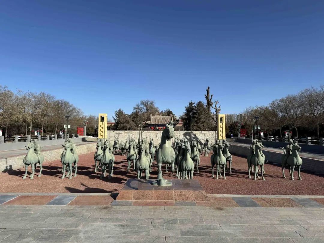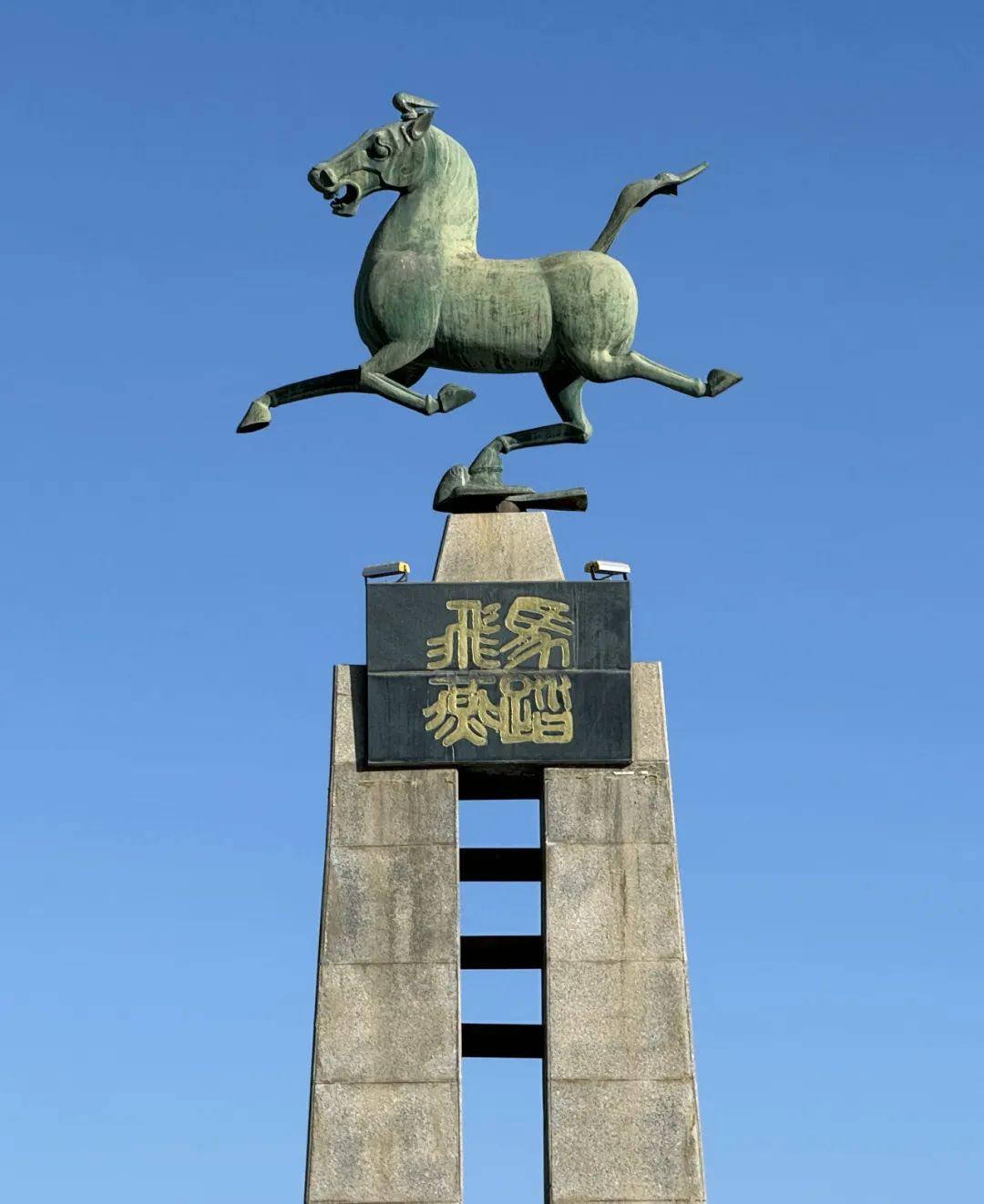 武威東站可謂要素過多,不僅站前廣場矗立着銅奔馬的形象,站名也使用了漢簡字體。