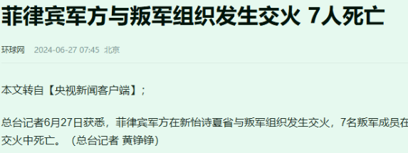 第三個是菲律賓問題,菲律賓內戰風險非常高,6月25日我們剛提到該問題的可能性,那邊沒過兩天就打起來了。據央視新聞27日報道,菲律賓軍方在新怡詩夏省與叛軍組織發生交火,7名叛軍成員在交火中死亡。