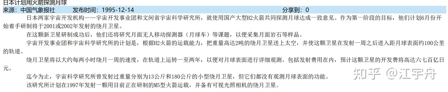 1995.12:計劃使用國產大型H2火箭探測月球,於2001或2002年發射繞月衞星(日本計劃用火箭探測月球 (cma.gov.cn))。