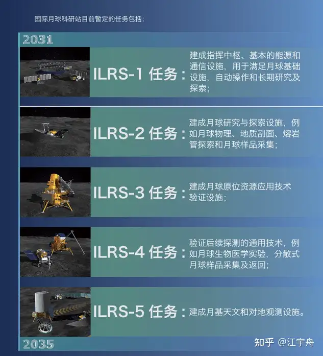 2021.3:中俄兩國政府正式啓動國際月球科研站(ILRS)項目的合作,6月,中國國家航天局和俄羅斯國家航天集團公司聯合發佈了《國際月球科研站路線圖(V1.0)》和《國際月球科研站合作伙伴指南(V1.0)》,介紹了國際月球科研站的概念、科學領域、實施途徑和合作機會建議等內容。該項目將面向所有感興趣的國家、國際組織和國際夥伴開放,在國際月球科研站的規劃、論證、設計、研製、實施、運營等方面開展合作,並歡迎在項目的各個階段,在任務的各個層級,以實物和非實物的形式參與國際月球科研站合作。(中俄牽頭,2035年在月球建成國際科研站 (guancha.cn))