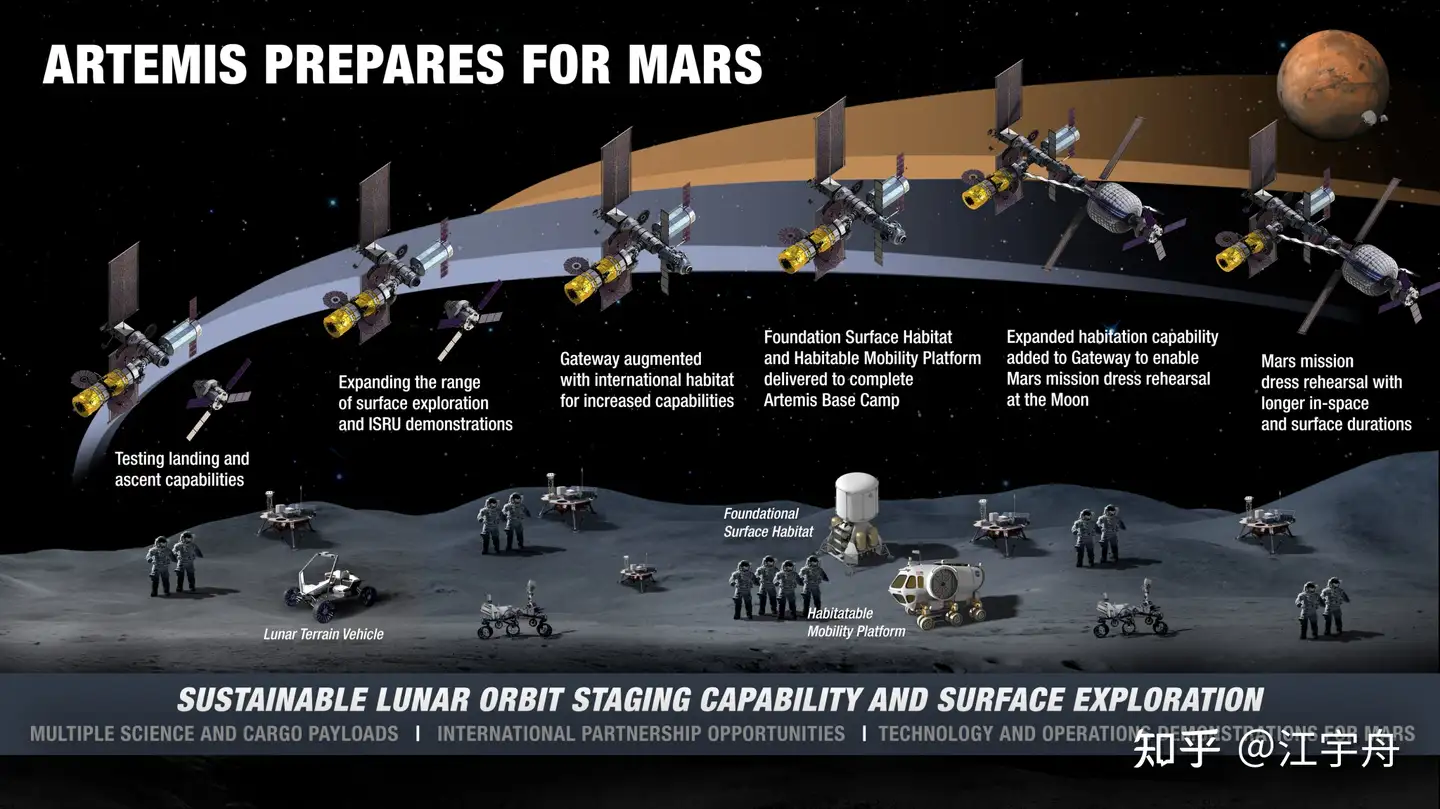2022.9:美國國家航空航天局(NASA)發佈《月球至火星目標》報告,確定了科學、基礎設施、運輸和居住、運行四大領域的共63個戰略目標,以及9個跨領域長期原則。(美國NASA發佈月球至火星載人深空探索戰略目標----中國科學院科技戰略諮詢研究院 (casisd.cn))