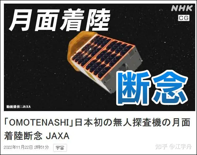 2022.11:搭美國阿爾忒彌斯一號計劃的便車,日本製造的“好客”探測器(重量僅為12.6千克)發射升空,這是該國首次登月嘗試,已較原計劃推遲了7年,但隨後出現失聯,任務以失敗告終。(月球探測器“好客”失聯,日本宣佈放棄首次月面着陸計劃 (guancha.cn))