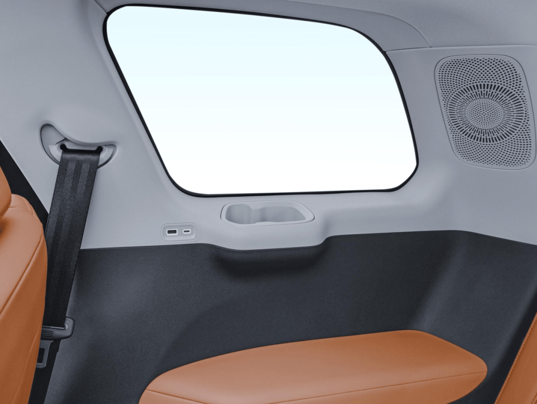 首先,雖然零跑一直在強調第三排的 “ 平權 ” ,但這個充電口只有右側座椅才有。。。