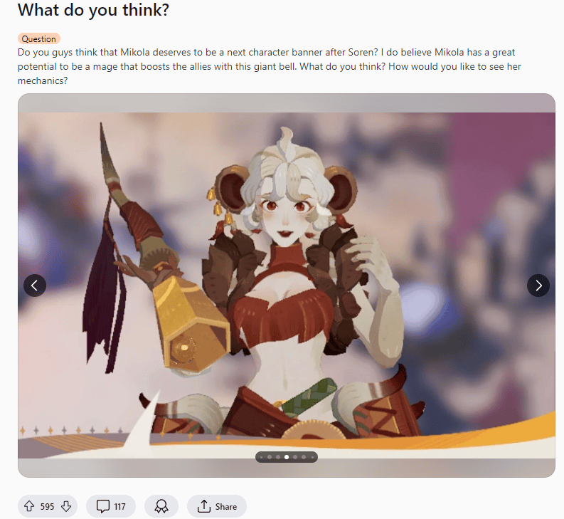 Reddit上有不少呼籲/猜測曼卡拉(Mikola)進卡池的“請願貼”