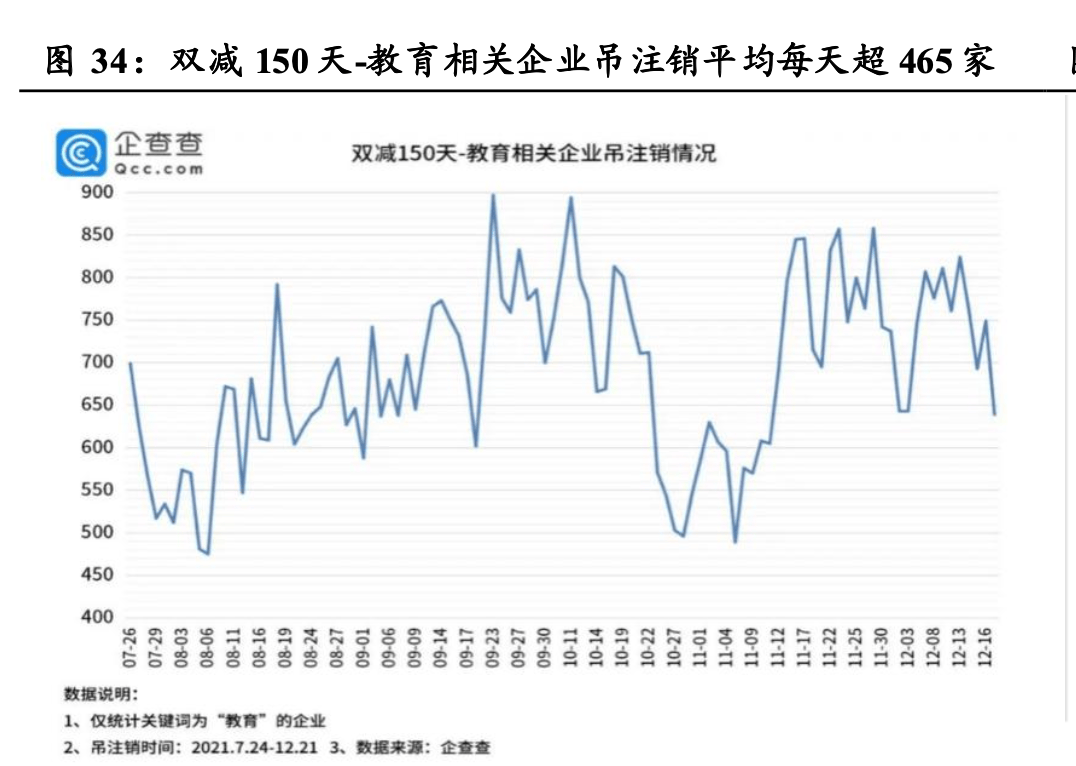 在雙減的150天內,教育相關的企業,平均每天吊銷超過465家。