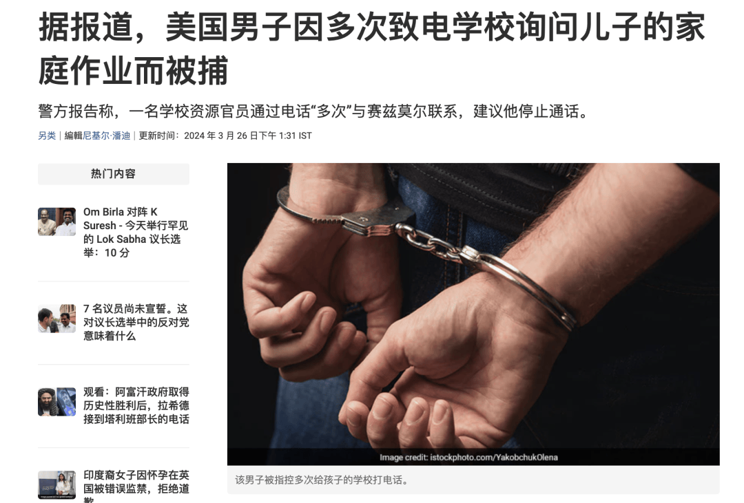 最為離譜的還是這個美國父親,因為孩子家庭作業不會寫,父親一晚上打給學校24回,就為了問作業題目,最後他被逮捕了。