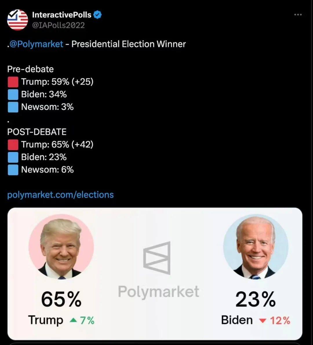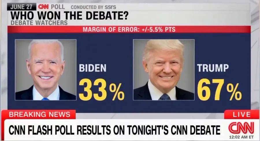 ——辯論後,民調顯示拜登的支持率明顯下降,與特朗普的差距有所擴大;